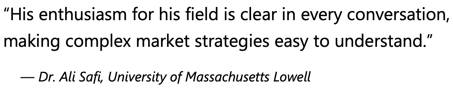 Beyond academia, I co-founded and directed an educational institution that, at its peak, served around 700 students—an experience that profoundly shaped my understanding of leadership, entrepreneurship, and social responsibility. Managing this organization taught me that business is not solely about profit; it is equally about creating value for people and making a positive impact on the community. This perspective continues to guide how I teach and mentor today—helping students see organizations as forces for both economic success and human betterment. I encourage them to translate theory into action and to lead with empathy, integrity, and a sense of purpose.