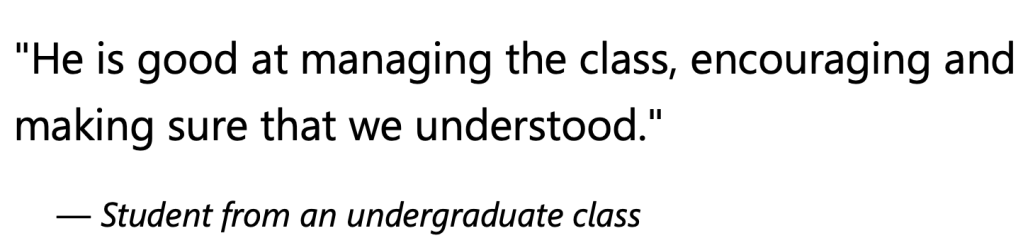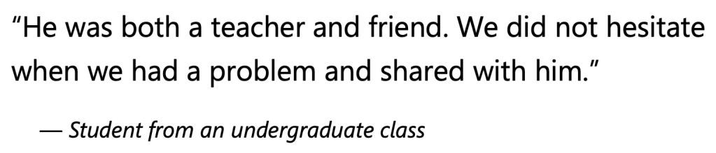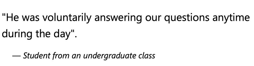 Engaging students and supporting their academic and professional growth are central to my teaching practice. I maintain an open-door policy, encouraging students to seek help and guidance whenever needed. I provide timely and constructive feedback on assignments and actively mentor students in their career aspirations. For example, I have guided students in their research projects, helping them develop strong research skills and a deeper understanding of the subject matter.
