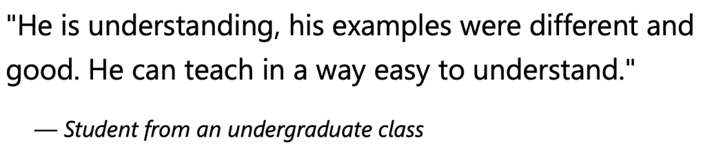 - Average student evaluation score: 4.7/5.0